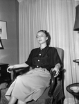 Mrs. Frank R. Roark, 2919 Benbrook Boulevard, is president of the Buchanan Study Club. She is also a member of the Etta Newby Club of the Woman's Club. Published in Fort Worth Star-Telegram morning edition, October 22, 1950. A woman wearing a black blouse and gray skirt sitting in a chair.