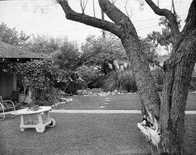 When Mrs. G. W. Shearer, 1600 Frederick, moved into her present residence, she busted herself with her hobby, plant life. In five years, she has developed a beautiful outdoor area. The type being encouraged by the Fort Worth Beautification Program co-sponsored by the Star-Telegram and the Chamber of Commerce. Eighty Varieties of flowers and shrubs have responded to her daily care. Published in Fort Worth Star-Telegram evening edition, October 23, 1950.