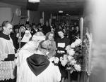 A group of people gathered at the dedication of the new Obstetrics Wing at Saint Joseph's Hospital. Among these people are: Bishop Joseph Patrick Lynch, Mrs. J. Lee Johnson III, Mrs. Burton Carter.
