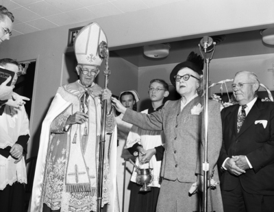 Dedication of the Obstetrics Wing at Saint Joseph's Hospital. Bishop Joseph Patrick Lynch is participating in the ceremony.