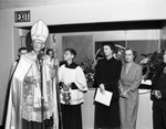 Standing from left to right is: Bishop Joseph Patrick Lynch, Jack Harkrider, Ruther Carter Stevenson, and Nenetta Burton Carter. This picture was taken at the dedication of the Obstetrics Wing at Saint Joseph's Hospital.
