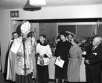 A group of people gathered at the dedication of the new Obstetrics Wing at Saint Joseph's Hospital. Among these people are: Bishop Joseph Patrick Lynch, Mrs. J. Lee Johnson III, Mrs. Burton Carter.