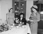 Amon Carter Riverside High School, the first high school in the Fort Worth Council the report a 100 per cent membership in the P-TA, had a membership tea recently at the school. Pouring tea from the silver tea service purchased recently by the Junior student council of the school is Mrs. Enoch H. Totten, center, P-TA president. Mrs. A. L. Bass, membership chairman, is left, and Mrs. E. N. Line, right, hospitality chairman. Published in Fort Worth Star-Telegram evening edition, October 24, 1950.