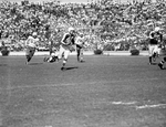 Johnny Cole, Arkansas back, races into the clear at the start of the 75-yard punt return for touchdown against Texas in the game at Austin. Pursuers are Bill Georges (87) and Don Menasco (53. Published in Fort Worth Star-Telegram morning edition October 22, 1950.