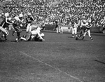 Johnny Cole (40) of Arkansas crashes in Texas' John Adams as the latter reaches for a pass that is too wide in the game at Austin. The Longhorns scored in fourth to win, 19-14. Published in Fort Worth Star-Telegram morning edition October 23, 1950.