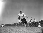 Fullback Larry DuBois is expected to carry the brunt of Carswell Air Force Base football team's line smashing at Farrington Field against the unbeaten, untied, unscored on Keesler Flyers. Published in Fort Worth Star-Telegram morning edition October 29, 1950.