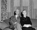 Image shows a shot of Dr. and Mrs. C. F. Hayes. They are shown to be seated on a couch. Dr. C. F. Hayes has been a physician for 57 years. Published in the Fort Worth Star-Telegram morning edition, October 29, 1950.