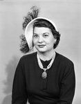 Image shows a bust shot of Miss Rita Bormes. Rita Bormes is a representative of a French perfume house. She reports that French women have a white faced look with darker lipsticks and comments that French Women dress off to please men. Published in the Fort Worth Star-Telegram morning edition, October 29, 1950.