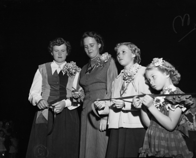 Symbolized by the cutting of a ribbon by Misses Vesta Grantham, Boonsville; Margaret Bradley, Poolville; Nancy Measures, Peaster, Karen McAdams, Weatherford, left to right. Published in Fort Worth Star-Telegram, morning edition, October 26, 1950.