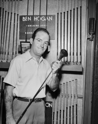 Image shows a bust shot of Boyd W. Huff. He is the former assistant golf professional at Northwood Country Club in Dallas. He joined the Colonial Club in a similar capacity. He is shown holding a golf club with an assortment of golf clubs shown behind him. Published in the Fort Worth Star-Telegram morning edition, October 31, 1950.