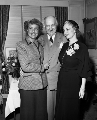 Amon Carter stands between Jeanette MacDonald, right, and his wife, Mrs. Amon Carter, right.