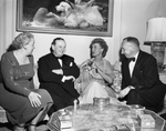 Jeanette MacDonald seated on a couch with three other people at a party held in her honor.