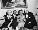 Seated from left to right is: Mrs. Amon Carter, Gene Raymond, Jeanette MacDonald, and Amon Carter. This picture was taken at a party hosted by Amon Carter for Gene Raymond and Jeanette MacDonald.