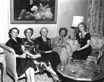 A group of women seated at a party hosted by Amon Carter for Gene Raymond and Jeanette MacDonald. Among these women is: Jeanette MacDonald, second from right, and Mrs. Amon Carter, right.