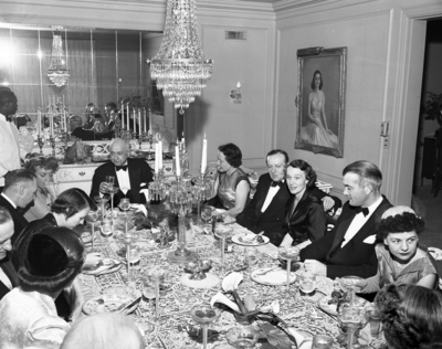 Amon Carter and Jeanetta MacDonald seated at a table with ten others.