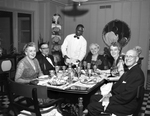 A group of people seated around a table at a party hosted by Amon Carter for Gene Raymond and Jeanette MacDonald.
