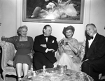 Jeanette MacDonald seated on a couch with three others at a party held in her honor.
