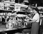 Mrs.. Clara W. Queen has a knack with packages for all occasions, but likes the tinsel and metal papers which make Christmas packages glamorous. Published in Fort Worth Star-Telegram morning edition December 10, 1950.