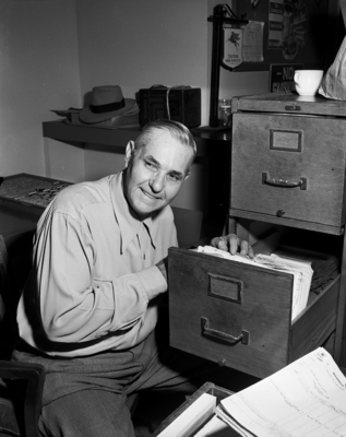 Image shows a bust shot of A. F. Gracy. He is Richland Hills' mayor. He is shown seated at filing cabinet. Published in the Fort Worth Star-Telegram morning edition , November 4, 1950.