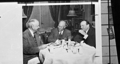 Carter files, early copy photo showing Amon G. Carter, Dwight D. Eisenhower, Sid Richardson all seated at a dinner table.