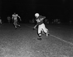 Paschal's Johnny Cozart (38) swings by fallen defender on 23-yard run against Poly in first period of the game. Cozart gained 86 yards and scored two touchdowns. Panthers won, 27-12. Published in Fort Worth Star-Telegram evening edition November 11, 1950.
