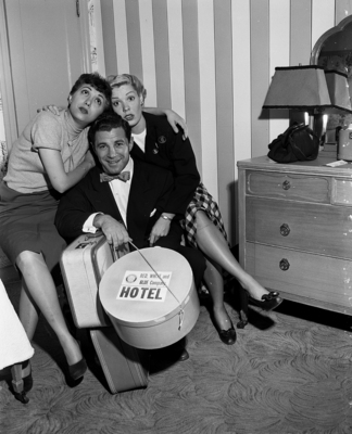 Comedienne Tina Rome, left, Bobby Carroll and Prima Donna Gale Sherwood, stars of the "Red, White and Blue" musical, relaxed briefly after their arrival from Houston. Carroll formerly sung with the Training Command band. Published in the Fort Worth Star-Telegram evening edition, November 13, 1950.