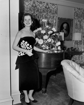 Miss Suzanne Mosser, daughter of Mr. and Mrs. H. J. Mosser, Westover Hills, was presented in Dallas at the 63rd Idlewild Club ball. Published in the Fort Worth Star-Telegram morning edition, November 19, 1950.