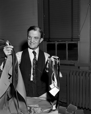 Bertram C. Rogers, an Englishman, interchange clerk for the Missouri-Kansas-Texas Railroad, retired after almost 42 years from his job at Katy yard office. Published in the Fort Worth Star-Telegram morning edition, November 16, 1950.