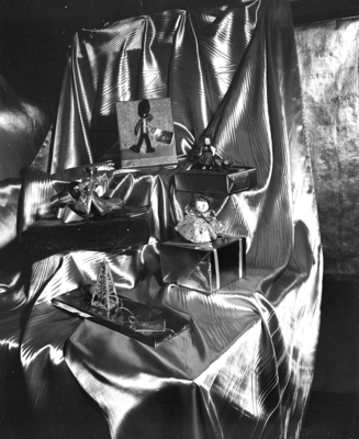 Pictured here are, from bottom to top, a miniature oil derrick, a fragile angel, a Texas cowboy, a Swiss doll dressed in native costume and a figure in the uniform of the famed Coldstream Guards. Published in the Fort Worth Star-Telegram morning edition, November 16, 1950.