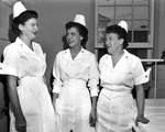 Standing from left to right, are Lieutenants Lois R. Clement, Velma G. Aardal and Lillian L. Zickler. They laughed together back on duty at Carswell after six weeks of emergency air evacuation duty between Tokyo and Hawaii. Published in the Fort Worth Star-Telegram evening edition, November 17, 1950.