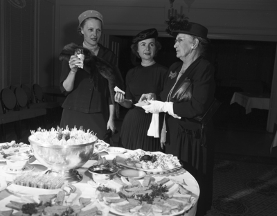 Left to right, Mmes. John Troy Vaughn her sister-in-law, Mrs. Ray Treadwell, and Mrs. Vaughn's mother, Mrs. John M. Treadwell, all of Menard, who attended the Auxiliary to the Sheep and Goat Raisers. Published in the Fort Worth Star-Telegram morning edition November 26, 1950.