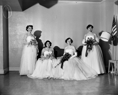 Honored at the Temple Beth-El Sisterhood ball held at the Blackstone Hotel were, left to right, Misses Cecilia Zodin, Vita Zodin, Caryl Siegel and Ruthie Spigel. Published in the Fort Worth Star-Telegram evening edition, November 22, 1950.