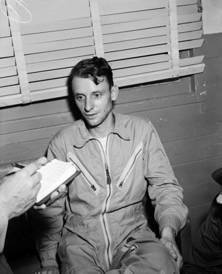 Lieutenant Oliver F. Hildebrandt, plane commander, Denver, Colorado and 4908 Penrose, Fort Worth. He had a near death experience when flying the B-36 plane that had crashed near Crowley. Published in the Fort Worth Star-Telegram morning edition November 23, 1950.