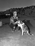 Wallace Hughes with "rig dog," pet at the No. 1-A McFarland. Published in the Fort Worth Star-Telegram morning edition December 3, 1950.