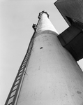 Tops in their business are R. E. Stinger, below, and Arnold Hoffman shown climbing up the T&P Railway's 210-foot smokestack where they put in a "routine" day of painting. Published in the Fort Worth Star-Telegram morning edition November 23, 1950.