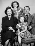 Mr. and Mrs. Roland E. Balch and children, Rosalyn Ann, standing, and Khileen, seated of Boulder, Colorado, formerly of Fort Worth, was honored at an open house from 2 to 6 p. m. and 7-9 p. m. At the home of Mr. and Mrs. J. G. Norman Senior, Grapevine Highway. Friends are invited to call. Published in the Fort Worth Star-Telegram evening edition November 24, 1950.