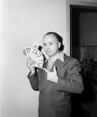 Al Levulis shown with cards. Published in the Fort Worth Star-Telegram morning edition November 25, 1950.