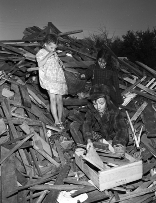 These children are typical of many of those writing to Chief Goodfellow. In too many of these families there are not enough clothes to go around and thier playthings are "just anything they can find." The little girl at the left was almost blue with cold when this picture was made. Published in the Fort Worth Star-Telegram morning edition November 26, 1950.