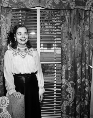 Portrait of Miss Emma Jane Owens dressed in a a blouse and some trousers. Published in the Fort Worth Star-Telegram morning edition November 27, 1950.