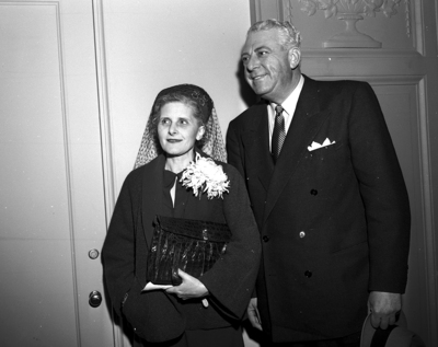 Miss Vivie Kellems, Connecticut manufacturer who is conducting a one-woman attack against government withholding taxes, and Jim Floyd, adverstising manager of the Lone Star Gas Company in Dallas, are shown as they toured Fort Worth. They are in town for the dinner meeting of the Fort Worth chapter, Texas Manufacturers Association, where Miss Kellems will speak. Published in the Fort Worth Star-Telegram morning edition November 29, 1950.