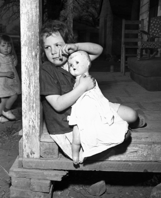 This little girl is one of the thousands waiting anxiously to see if the Goodfellows will bring her Christmas- or will pass up her house. Only the Goodfellows theselves can answer this question with adequate contributions to the Goodfellow Fund. Published in the Fort Worth Star-Telegram evening edition December 7, 1950.