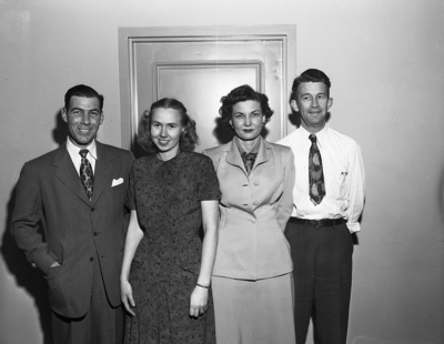 Image shows the Board of directors and officers of the Employees Association of the Fort Worth Star-Telegram. Left to right, Frank Nicholson, composing room; Liz Smith, Dispatch; Alice Ward, Business Office; Harry Heinecke, Editorial. Published in Fort Worth Star-Telegram December 1950.