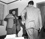 Tarrant County gambler Jim Thomas after being questioned by police re nitro car-bomb death of Nelson Harris and pregnant wife and the attempt on gambler Tincy Eggleston’s life on November 22, 1950; Published in the Fort Worth Star-Telegram morning edition December 7, 1950.