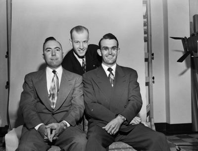 Smiles of success light the faces of these three Fort Worth men who have completed their five-year college course and have been approved by the American College of Life Underwriters as chartered life underwriters. Left to right, A. D. Mercer Jr. Metropolitan Life; R. J. McNeely, New York Life, and Paul W. Needham, Amicable Life Insurance Company. Published in Fort Worth Star-Telegram morning edition December 7, 1950.