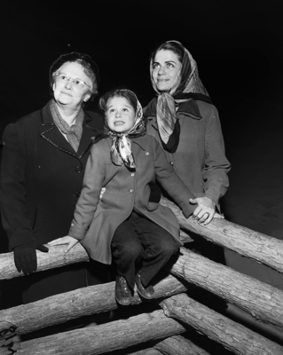 These three visitors from Brownwood visited the Star-Telegram community Christmas tree for the second time in a week. Left to right, Mrs.. R. L. Crow, Shirley Leach, 6, and her mother, Mrs.. Richard Leach, all of Brownwood. Mrs.. Crow said a number of her friends there had seen the tree. Published in Fort Worth Star-Telegram evening edition December 8, 1950.