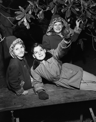 From a perch beneath a Magnolia in Burk Burnett Park, Ernest Horn, 12, of 2734 Merrimac points to the three-foot neon star atop the Star-Telegram community Christmas tree, but finds it difficult to draw the attention of 10-year-old Helen Ruth Cox , and Elma Ruth Stea