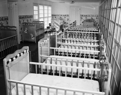 Beds for toddlers in Lupton memorial Babyland. Published in Fort Worth Star-Telegram morning edition December 10, 1950.