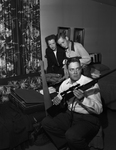 Truett Owen isn't gunning for any grandstand wolves, he's just polishing his rifle before leaving on hunting trip after resigning as football coach at Arlington Heights. Mrs.. Owen and Robert, 12, assist with packing. Published in Fort Worth Star-Telegram evening edition December 11, 1950.