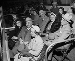 At rodeo performance a trio of men who make cattle their business were guests of Amon Carter, chairman of the Stock Show board. Left to right, front row, were Mrs. Jess Andrew; Ed F. Fisher, president of the American Hereford Association, Detroit, and Mrs. Jack Turner. Second row, Jess Andrew, West Point Ind., president of International Livestock Exposition; Mrs. Emil Rezac of Tabor, S. D., wife of a Hereford judge at the show, and Jack Turner of Kansas City, Mo., secretary of the American Hereford Association. Third row: Mrs. John Vanier, left, Brookville, Kan., and Emil Rezac.
