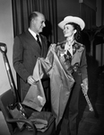 Ware was presented with a pair of trousers, shirt and jacket made in Fort Worth, by Mrs.. Frankie Alexander Reagor, in western attire. Published in Fort Worth Star-Telegram morning edition August 14, 1950.